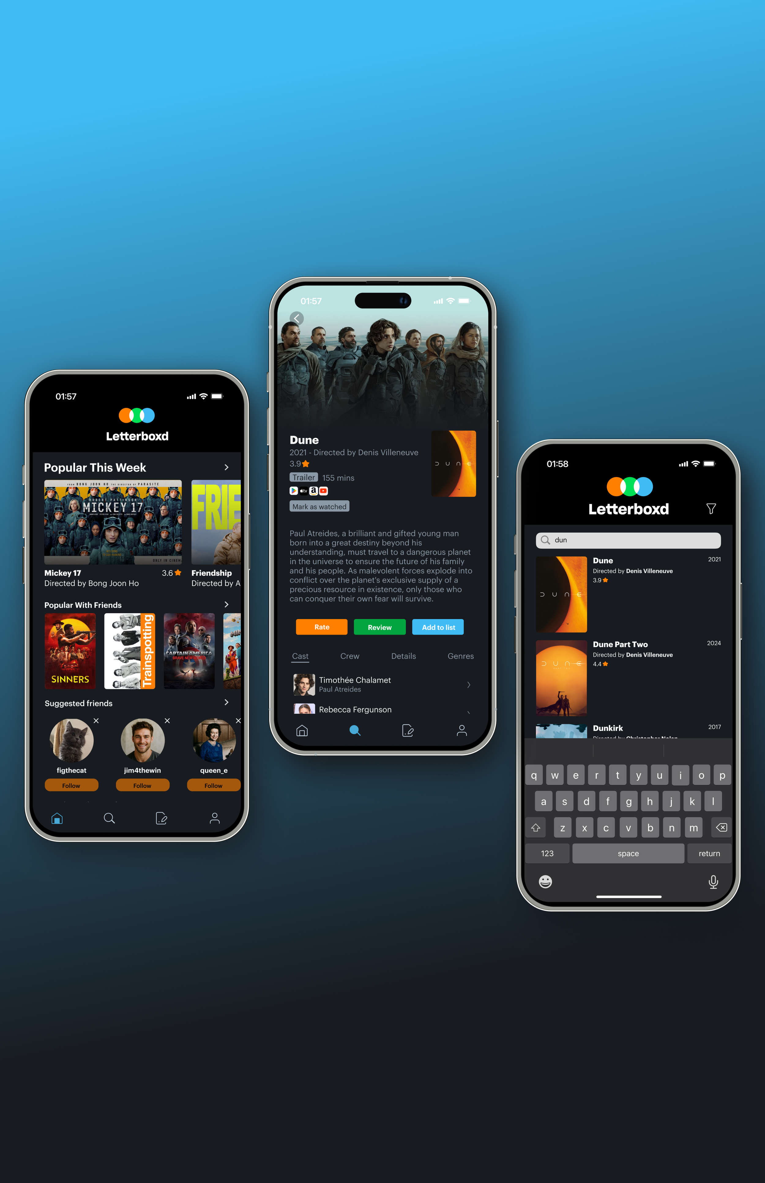 A UX redesign of the Letterboxd app focused on improving social discovery, search usability, and content clarity.