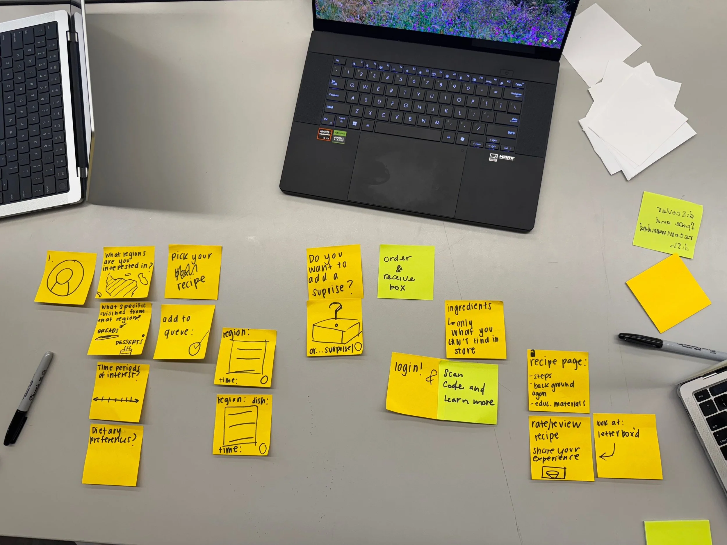 In terms of engagement, most participants expressed interest in a monthly or bi-monthly subscription model rather than a weekly service. Physical recipe cards were preferred over fully digital formats, as they offered a more tactile and immersive experience. Many participants liked the option of receiving a key spice or a small relevant tool with their recipes, though they wanted the flexibility to choose what was included. While they appreciated user-generated content, they preferred it in a structured, bulletin-board format rather than a traditional social media feed.