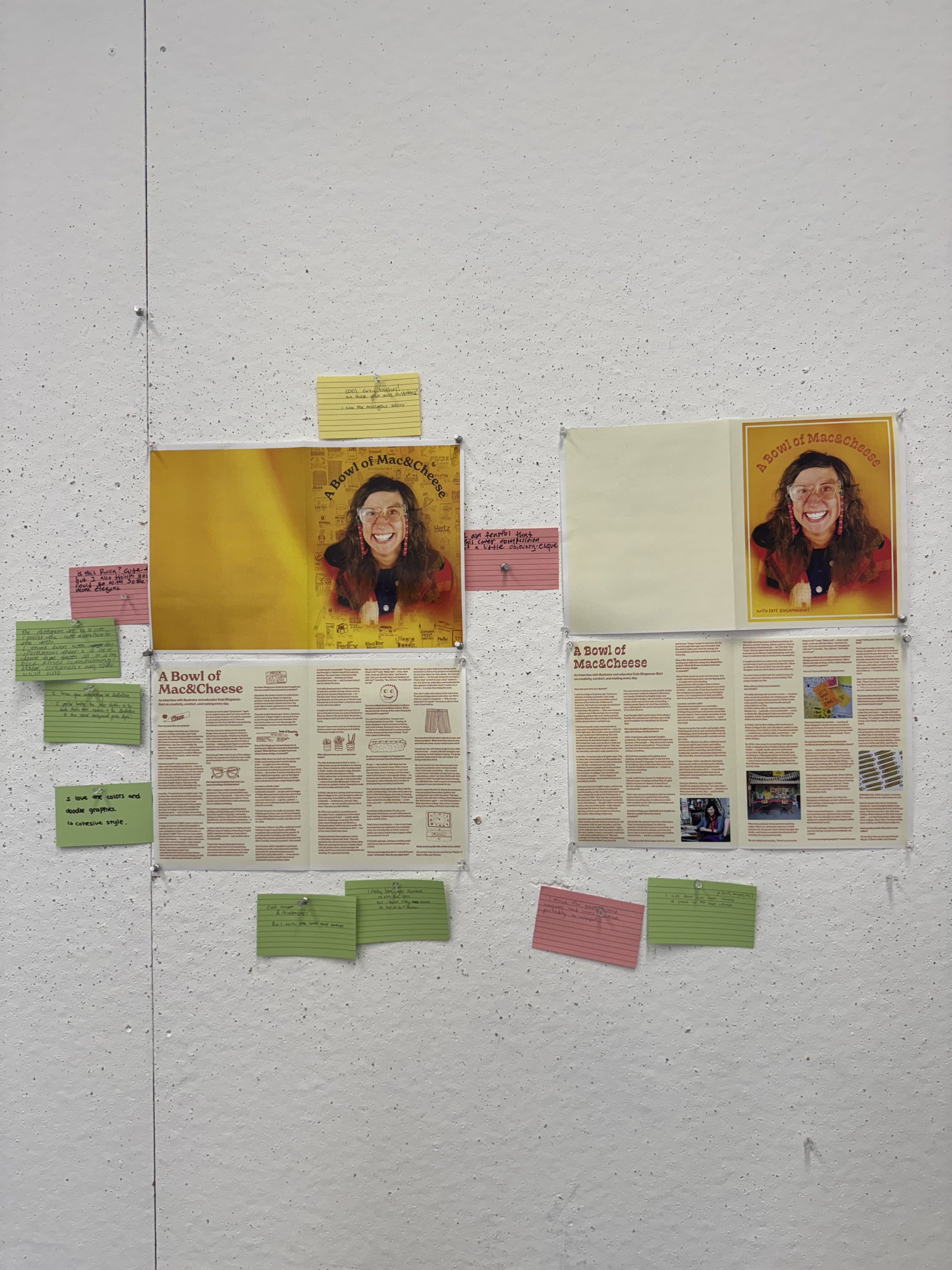 Moving forward, I want to keep building projects that center real voices and lived experiences. This interview made me excited to create more designer features that live in both print and digital spaces. I hope to keep refining this system and grow it into a larger series that celebrates creative communities the way Kate does.